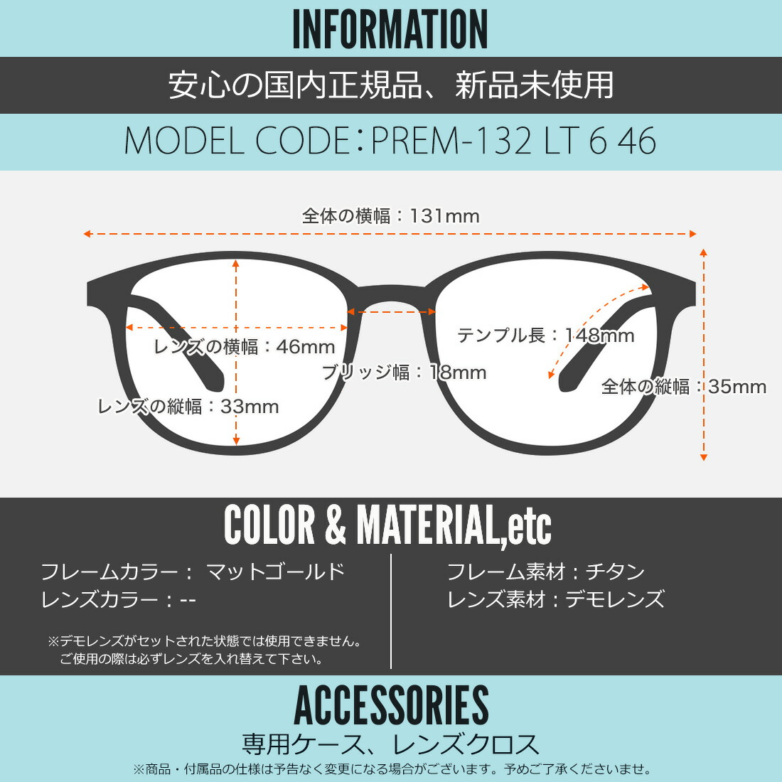 テンプルの長さ:148mm