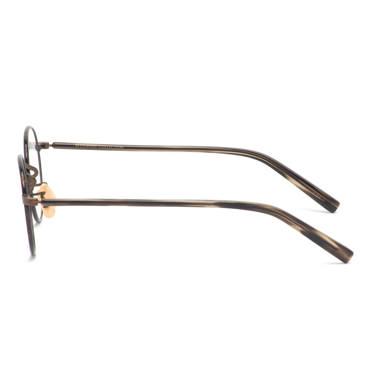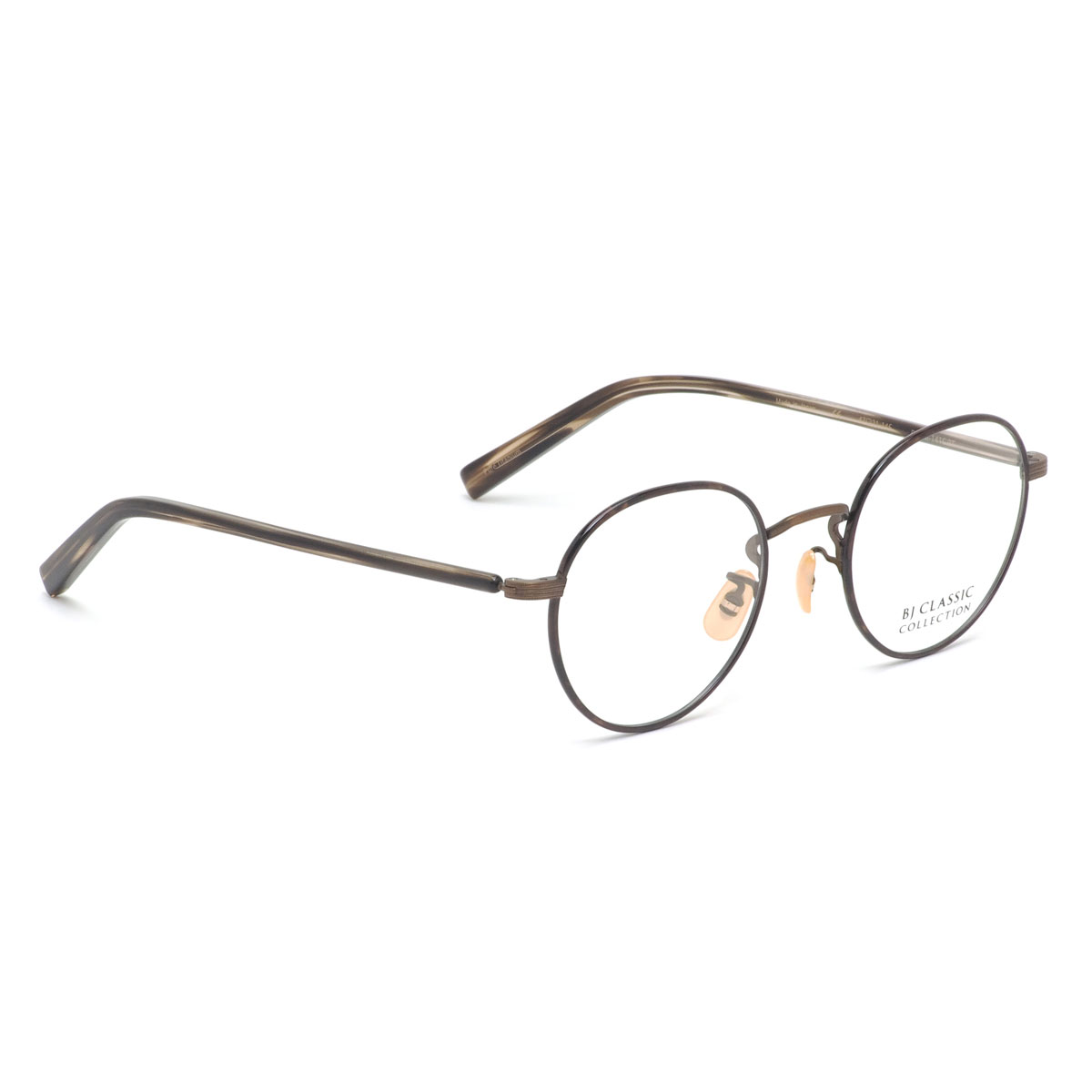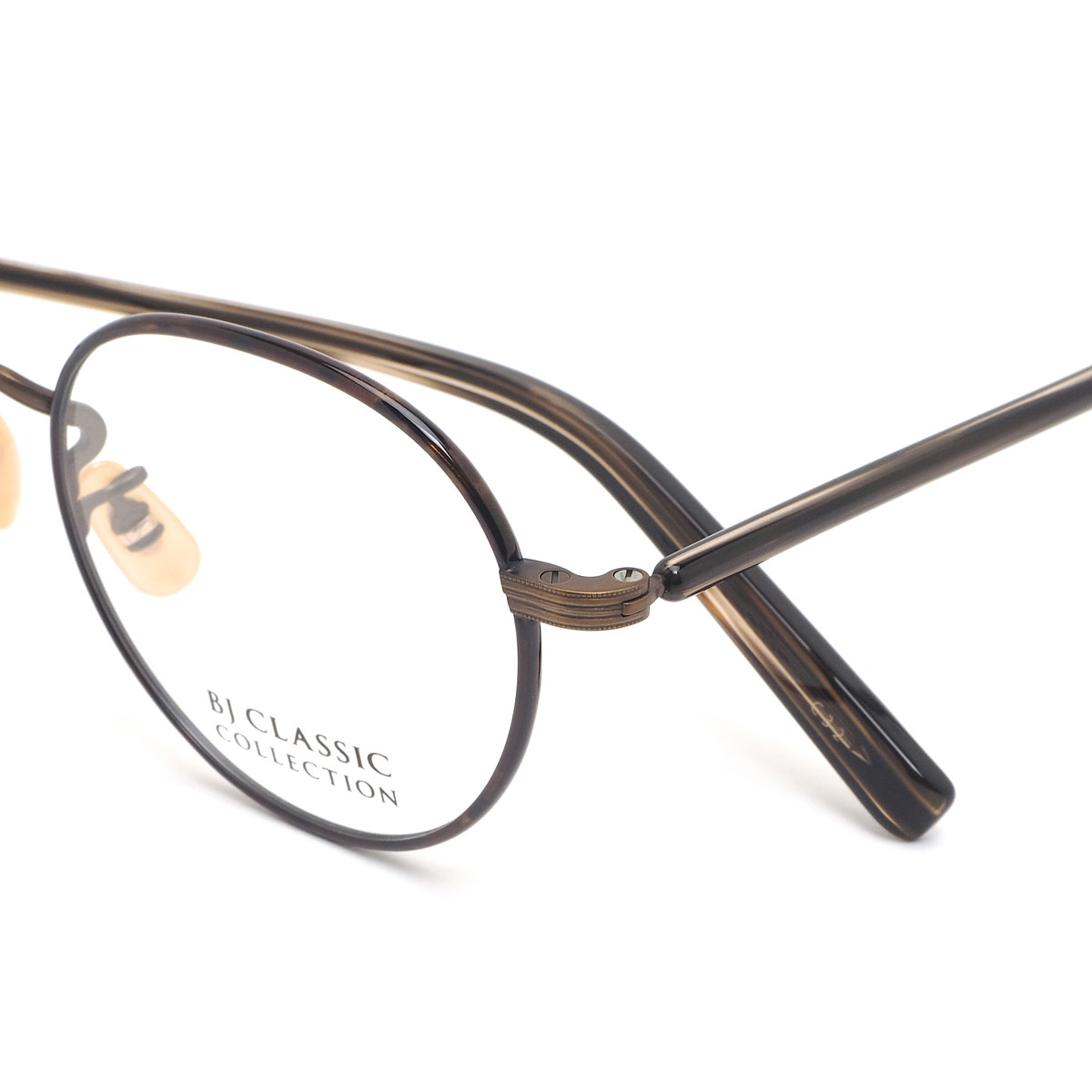 《 BJ CLASSIC COLLECTION 》は、日本を代表するアイウェアブランド。アメリカンクラシックをデザインの源流としつつ、西洋人と日本人の骨格の違いを意識し、サイズ、フォルムをリファイン。日本製の品質の高さと、掛け心地の良さ、そして徹底した日本人に似合うデザインの追求によって、時代の流れに翻弄されることのない1本を紡ぎ出している。