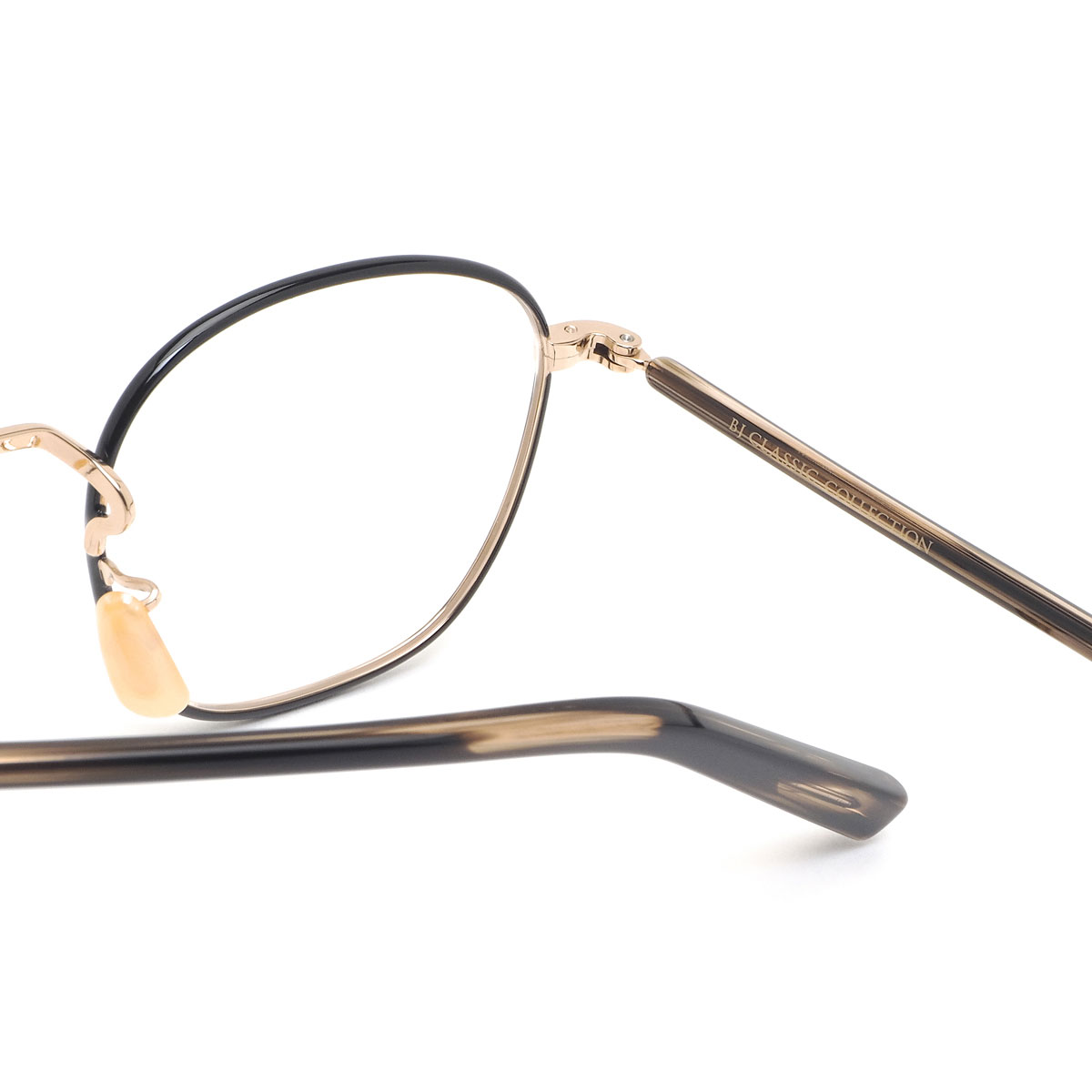 《 BJ CLASSIC COLLECTION 》は、日本を代表するアイウェアブランド。アメリカンクラシックをデザインの源流としつつ、西洋人と日本人の骨格の違いを意識し、サイズ、フォルムをリファイン。日本製の品質の高さと、掛け心地の良さ、そして徹底した日本人に似合うデザインの追求によって、時代の流れに翻弄されることのない1本を紡ぎ出している。