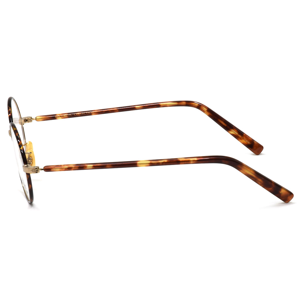 テンプルは細いメタル芯材を円筒型のアセテートで包み、温かみのあるやさしい空気を纏っています。