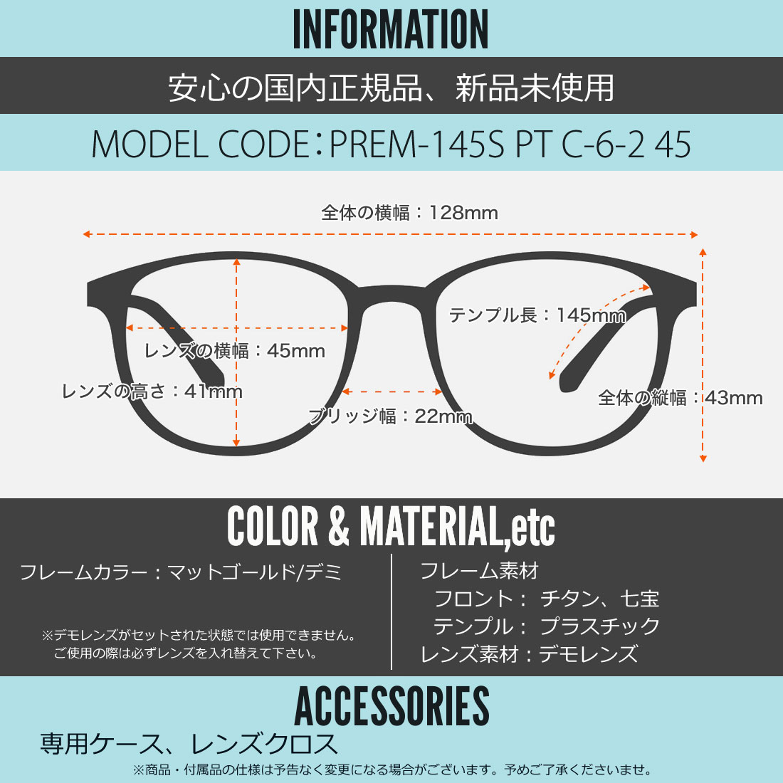 テンプルの長さ:145mm