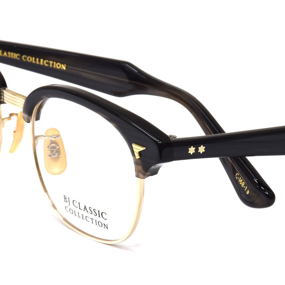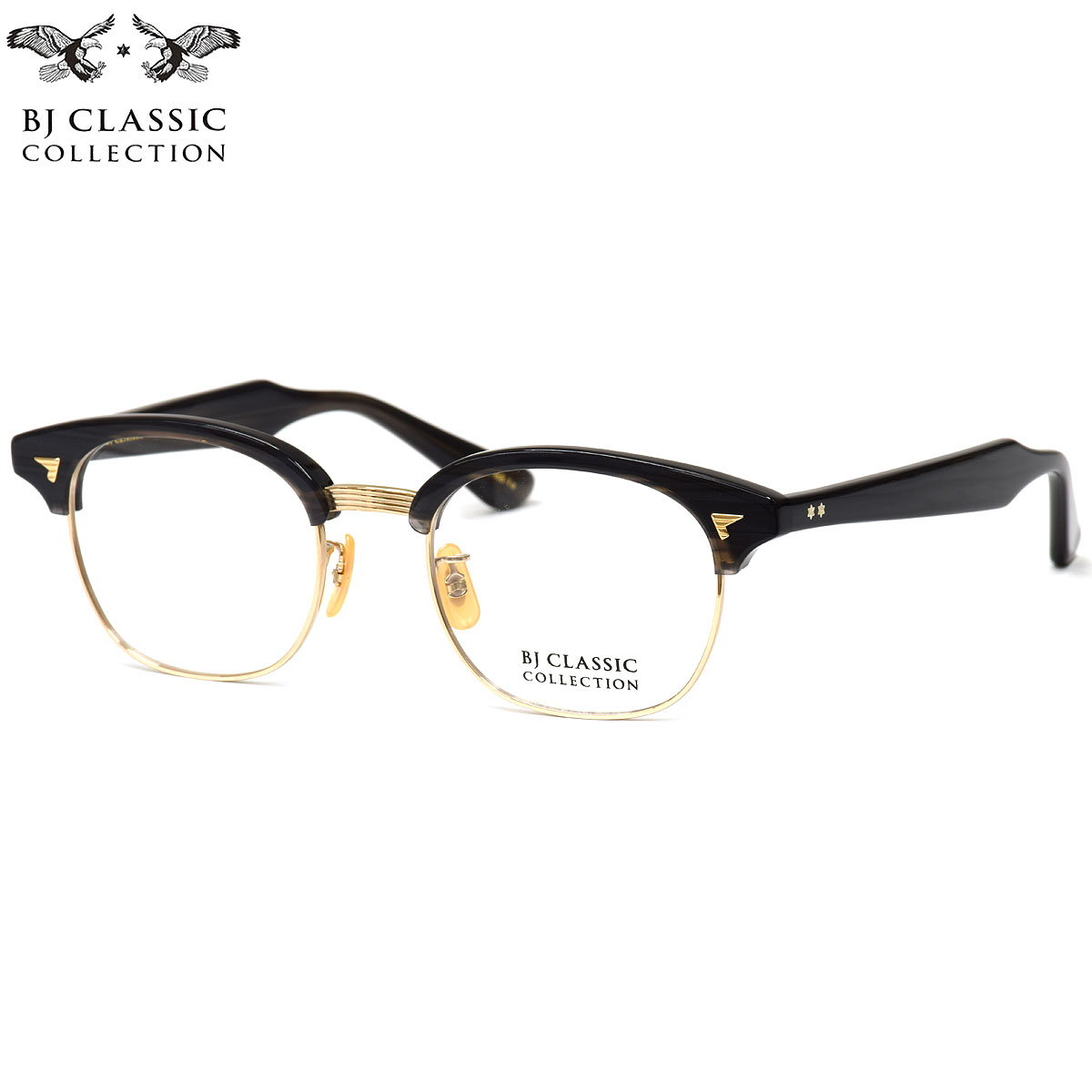 《 BJ CLASSIC COLLECTION 》は、日本を代表するアイウェアブランド。アメリカンクラシックをデザインの源流としつつ、西洋人と日本人の骨格の違いを意識し、サイズ、フォルムをリファイン。日本製の品質の高さと、掛け心地の良さ、そして徹底した日本人に似合うデザインの追求によって、時代の流れに翻弄されることのない1本を紡ぎ出している。