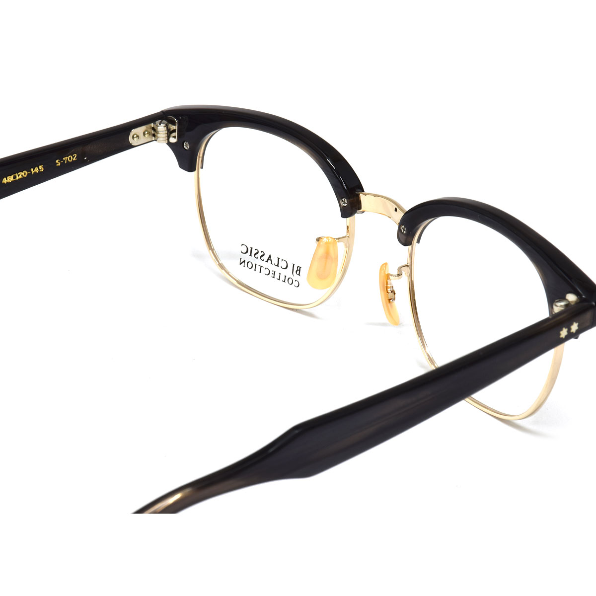 「S-702」は天地が深めでやさしい丸みを帯びたウェリントンモデルです。ブローラインの程よい太さや曲線具合、丸みのあるレンズシェイプが、カリスマ性や力強さを特徴とするサーモントタイプに柔らかさを添えています。