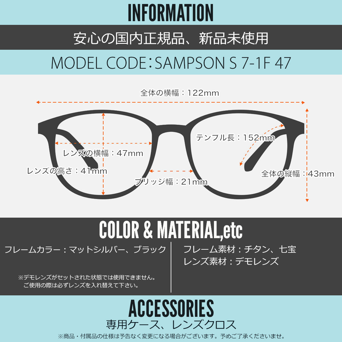SAMPSON S 7-1F 47 は、柔らかい印象の小ぶりなボストンシェイプフレームです。