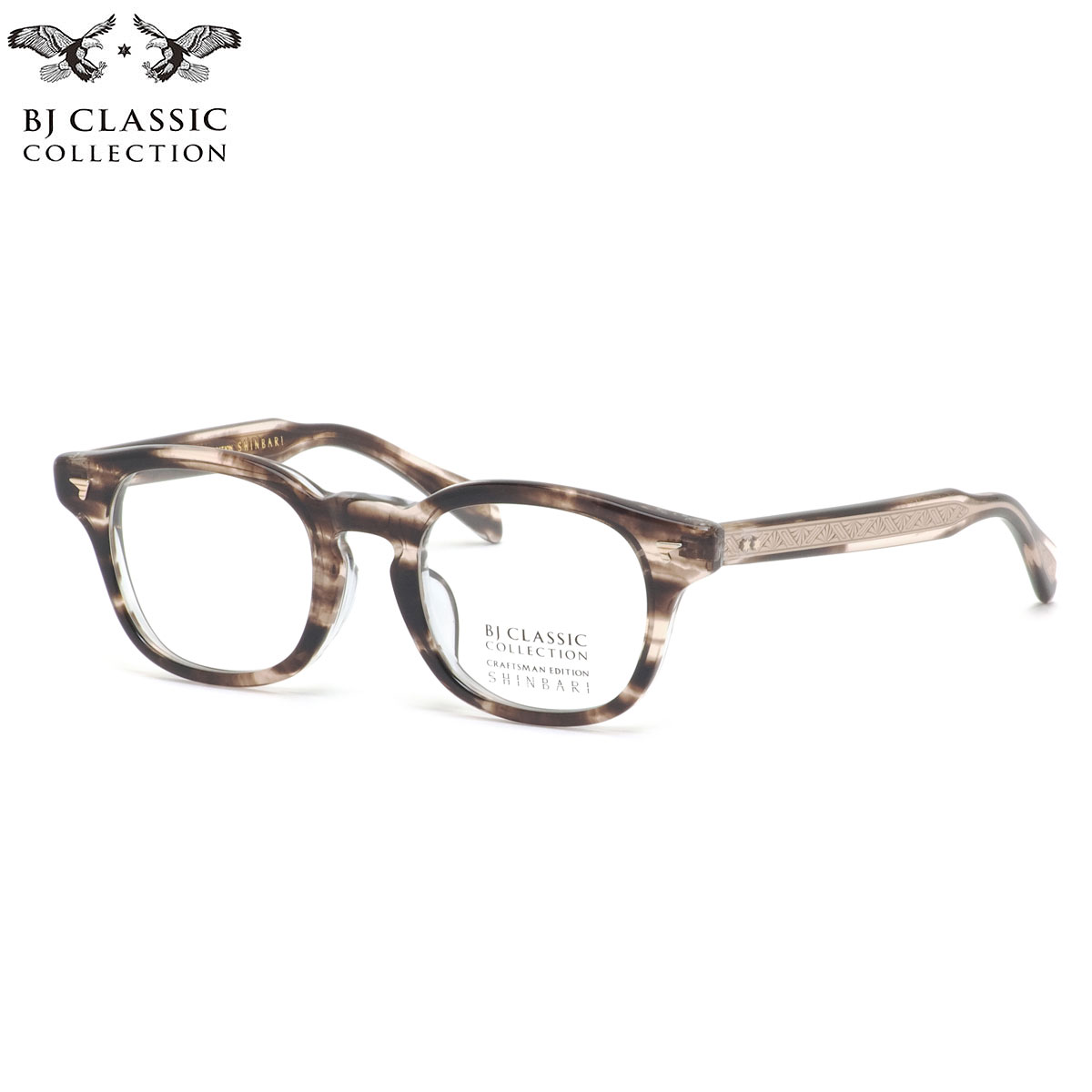 《 BJ CLASSIC COLLECTION 》は、日本を代表するアイウェアブランド。アメリカンクラシックをデザインの源流としつつ、西洋人と日本人の骨格の違いを意識し、サイズ、フォルムをリファイン。日本製の品質の高さと、掛け心地の良さ、そして徹底した日本人に似合うデザインの追求によって、時代の流れに翻弄されることのない1本を紡ぎ出している。