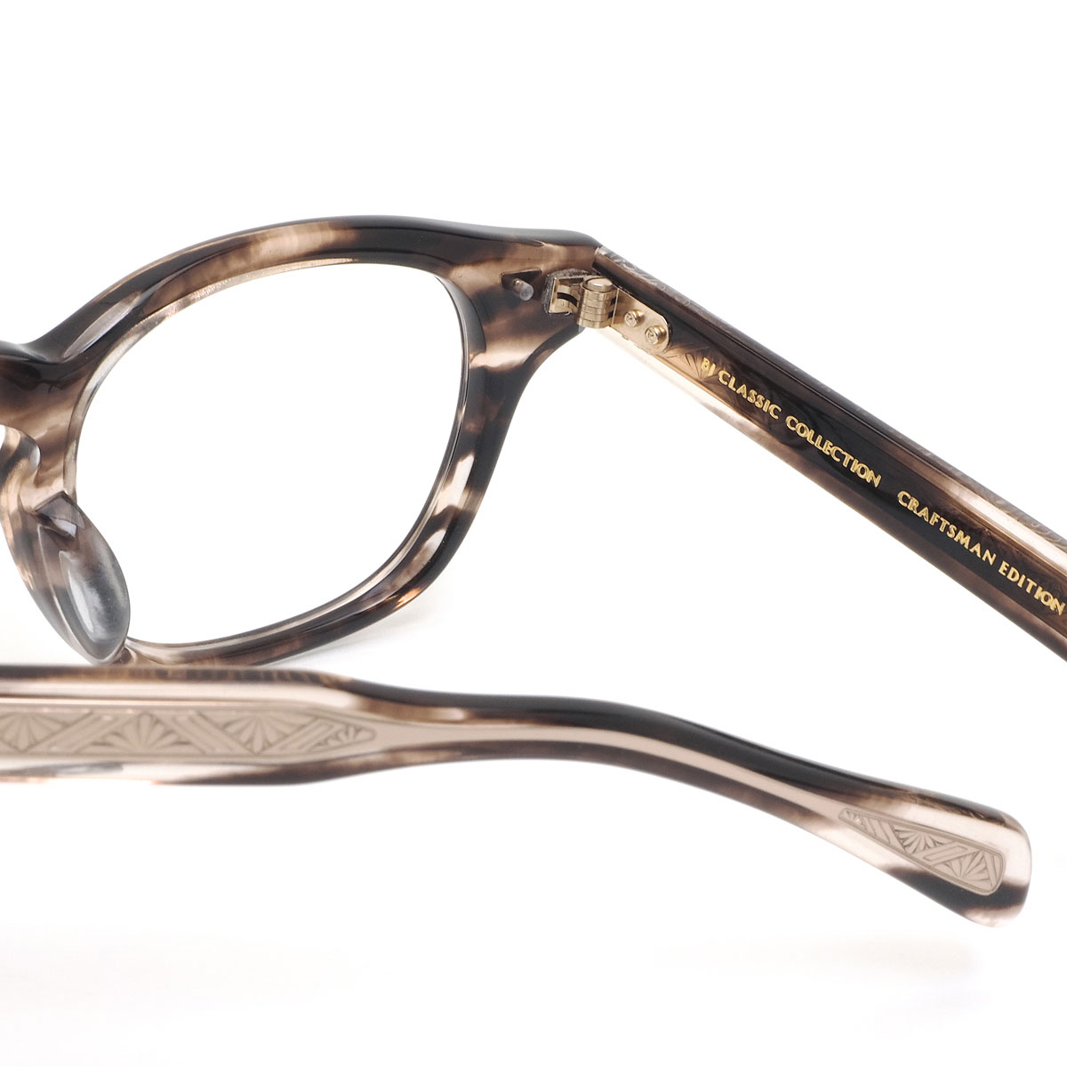ヴィンテージ模様が刻印された金属芯が、美しい存在感を放つ特別なアイウェア。