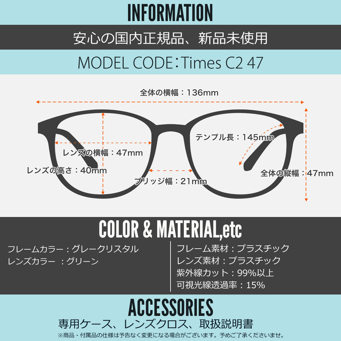 テンプルの長さ:145mm